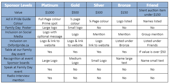 All Community Partners must comply with the goals, values of the Oxford County Pride Committee. (See our About Us page)