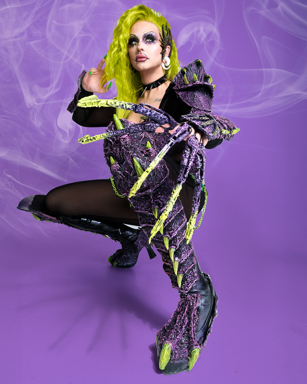 A much sought-after designer, Helena’s iconic designs are frequently seen on queens from various seasons of Canada’s Drag Race. As a performer, she channels her love for punk rock, frequently delivering electrifying covers of pop-punk hits, especially those by bands like First to Eleven and Halocene.